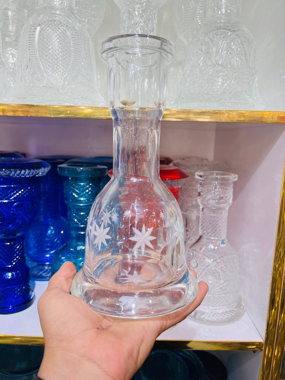 شیشه تراش کاری شده قلیان (سایز سیسمونی)۵۵۰٬۰۰۰ تومان