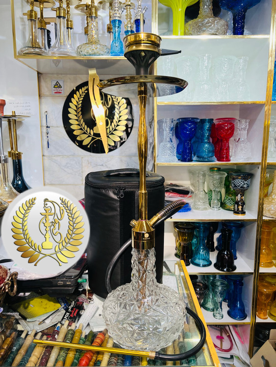 قلیان کرنو مدل نیویورک شیشه ایس کریستال رنگ طلایی جنس شمش برنج ابکاری پی وی دی