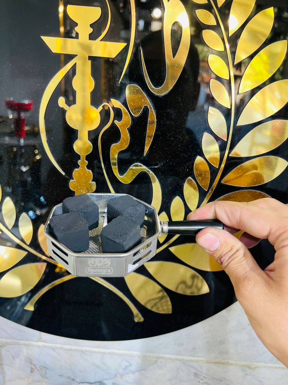 بادگیر محافظ زغال جنس استیل محافظت از ذغال قلیان و کاربرد اصلی محصول جلو گیری از خاموش شدن قسمتی از ذغال که روی فویل قرار میگیرد