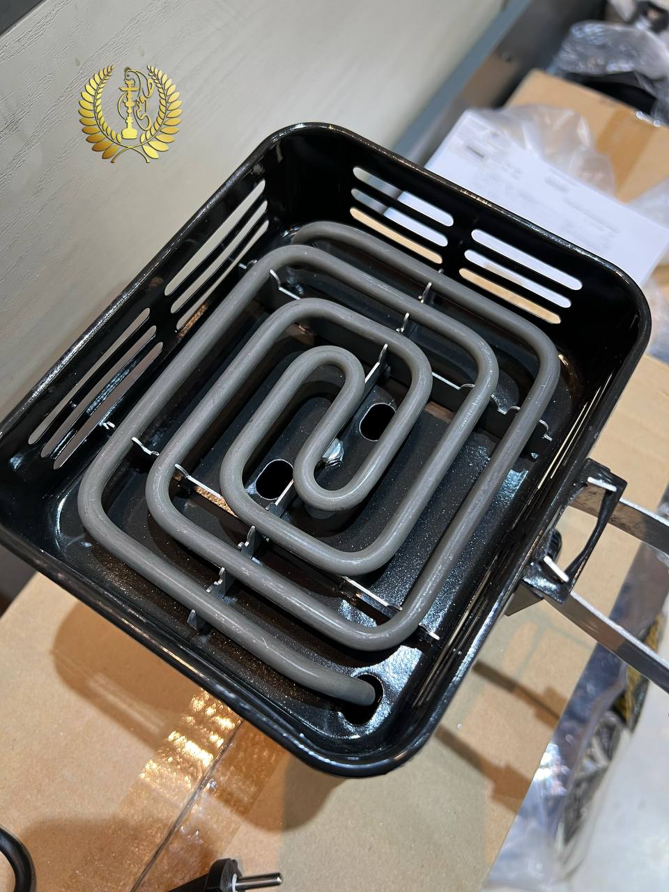 زغالها روی المنت قرار داده شده و دستگاه روشن میشود. المنت برقی حرارت را به طور یکنواخت به زغالها منتقل میکند.