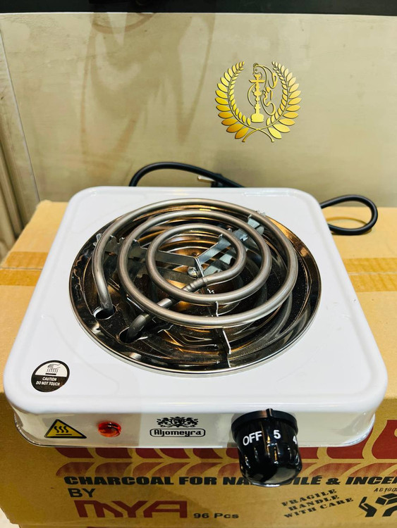 زغالها روی المنت قرار داده شده و دستگاه روشن میشود. المنت برقی حرارت را به طور یکنواخت به زغالها منتقل میکند.
